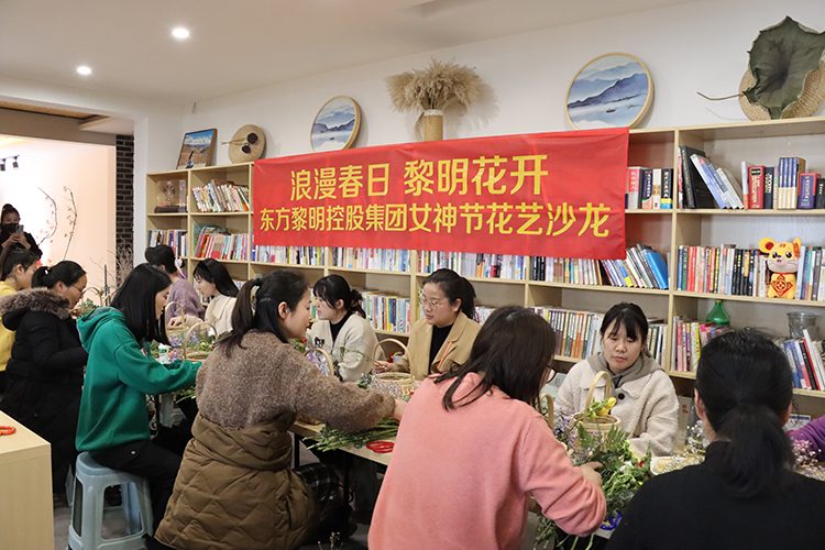 3月8日下午,集團公司全體女員工,在徐州舉辦了一場以“浪漫春日 黎明花開”為主題的花藝沙龍?,F場,花藝師講述了花的種類和插花原則,并進行了剪裁示范、插花表演,大家紛紛化身“巧手設計師”,跟著花藝師的節奏,結合各自手中的花材特點,修剪枝葉、搭配色彩、設計造型,享受著親手創作的樂趣。